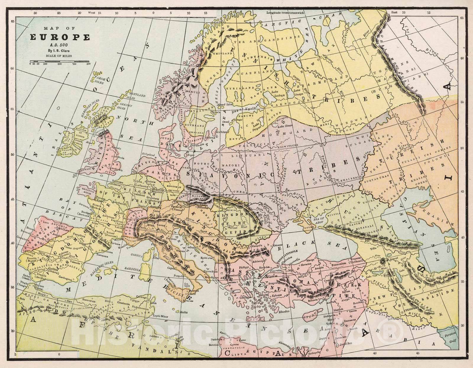 Historic Map : 1901 Map of Europe A.D. 500 Vintage Wall Art